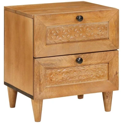 ManoManoGeneral description This sleek bedside table features a modern design that seamlessly fits into contemporary styles. Measuring 40 x 33 x 46 cm, it provides an ideal size for any bedroom or living room, offering a convenient spot for your nighttime essentials or decorative items. Its smooth, rectangular shape adds elegance while serving its purpose. Built from solid mango wood, it boasts a sturdy frame for long-lasting use, complemented by a rustic matte finish that enhances its appeal and compatibility with various home styles. Technical specifications Material: Solid mango wood Overall dimensions: 40 x 33 x 46 cm (L x W x H) Color: Light brown With drawer Durable construction Assembly required: Yes EAN: 8721158451712 SKU: 4018078 Functional Storage Design Spacious drawers made of solid mango wood for ample storage Easy-glide drawers keep essentials within reach, reducing clutter User-friendly Assembly Requires two people for assembly using a screwdriver Ensures stability while