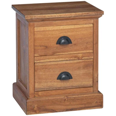 This bedside table presents a perfect blend of vintage style and functional design. Its exquisite rectangular shape and a unique natural teak finish reflect timeless craftsmanship. It enhances the aesthetic appeal of any bedroom setting, offering both style and practicality. As a small nightstand, it serves as an excellent platform for bedside lamps, alarm clocks, or cherished personal items, while its vintage charm brings warmth and character to the room. Solid Teak Wood Construction The bedside table is crafted from solid teak wood, ensuring durability and visual appeal. The natural grain and smooth finish underscore its unique handmade quality, promising a steadfast presence in your bedroom decor. Two Smooth-Glide Drawers Featuring two drawers carved from solid teak wood, this table offers ample storage for personal essentials. The smooth-glide mechanism allows for easy access, making it a convenient addition to your nighttime routine. Easy-Grip Metal Handles Each drawer is equipped with easy-to-grip metal cup pulls, providing a touch of modernity and practical access to stored items. These handles are designed for ergonomic use, blending efficiency with elegance. Vintage Style Embracing a vintage aesthetic, this bedside table evokes a bygone era while maintaining contemporary functionality. Its timeless style adds depth and personality to any bedroom space, catering to those who appreciate classic design. Care Guidelines Maintain the natural beauty of the table by avoiding abrasive cleaners. Routine care will ensure the long-lasting finish and preserve the integrity of the wood, keeping the table as striking as the day it arrived.