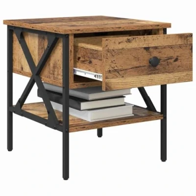 ManoManoGeneral description This Modern Bedside Cabinet is designed to bring both style and practicality to your bedroom. With a rectilinear silhouette that emphasizes simplicity and function, it seamlessly integrates into contemporary spaces. Suitable for keeping your nighttime essentials like a lamp, alarm clock, or personal items close at hand, this bedside table serves as a functional yet elegant centerpiece to any bedroom setting. Technical specifications Colour: Old wood Material: Engineered wood and metal Overall dimensions: 40 x 42 x 45 cm (L x W x H) With drawer With shelf Durable Levelers Assembly required: Yes EAN: 8721288517456 SKU: 871222 Brand: vidaXL Usage Perfect for storing books, glasses, or remotes, making this piece a versatile addition to your nighttime routine. Other information