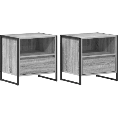 vidaXL Bedside Table with Drawer 2 pcs Grey Sonoma 50 x 39.5 cm
