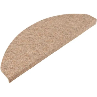 vidaXL Beige Stair Mats Self Adhesive Carpet Tread Rugs, Needle Felt Fabric, Sound Dampening, Easy Install (15 pcs, 65x22.5 cm)