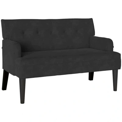This Chesterfield Bench embodies style and sophistication, offering a modern touch to any living area. Designed with simplicity and function in mind, this piece features a sleek rectangular shape that fits seamlessly into both living rooms and bedrooms. The bench adds a refined appeal with its velvet upholstery, creating a plush seating solution ideal for intimate gatherings or quiet evenings spent unwinding. Velvet Elegance: This bench is upholstered with lush velvet that exudes a refined charm and a luxurious feel under the hand. The soft texture of the velvet enhances the visual appeal and ensures comfort, making it a stylish choice for any modern interior setup. Supportive Backrest: Featuring a presentable back type, this bench offers superior support with its thickly padded backrest, allowing users to relax comfortably. It's perfect for lounging or adding extra seating in social gatherings, making it equally functional and decorative. Robust Structure: Built with a plywood frame and durable rubberwood legs, this piece balances elegance with sturdiness. It ensures a stable sitting experience, supporting the bench's sleek design without sacrificing structural integrity. Modern Style: Characterized by clean lines and minimal ornamentation, the Chesterfield Bench seamlessly integrates into various room aesthetics, from modern to transitional. The rolled armrests contribute an inviting charm, enhancing its appeal. Low Maintenance: Designed for easy care, the velvet surface can be simply wiped with a damp cloth to maintain its exquisite appearance. This minimal upkeep requirement ensures longevity and convenience, keeping the bench in prime condition effortlessly.