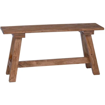 This wooden bench beautifully showcases the rustic charm through its backless design and solid mahogany wood construction. Its oiled finish highlights the natural beauty and texture while providing durability and protection, ensuring a timeless piece that effortlessly enhances any bedroom or indoor sheltered outdoor space. Premium Solid Mahogany Material The bench is crafted from solid mahogany, known for its strength and durability. This material offers both an elegant aesthetic and long-lasting use, making it an excellent addition to any room or corridor. Sturdy Post Leg Construction Supported by robust post legs, it promises reliable support and stability. These legs are designed to withstand daily use, making them a dependable choice for high-traffic areas like entryways or bedrooms. Natural Oiled Finish The bench's oiled finish not only preserves its rich mahogany tones but also protects the wood from elements like moisture and dust. This ensures the bench remains aesthetically pleasing with minimal wear over time. Backless Configuration Its backless design offers flexible seating arrangements, enabling it to fit beneath tables or take center stage in a room. It facilitates easy movement and caters to various seating needs without compromising style. Easy Maintenance Simply wipe the bench with a dry cloth to maintain its pristine condition. This straightforward upkeep routine makes it perfect for those seeking beautiful furniture that requires minimal effort for long-term care.