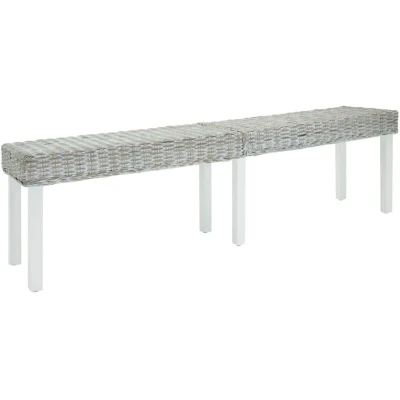 General description Introduce an air of natural charm into your interior decor with this unique rattan bench! The bench features a soft kubu rattan seating area, providing exceptional comfort, while the solid mahogany wood legs ensure sturdiness and stability. This wooden bench is a perfect combination of style and functionality, making it an eye-catching addition to your living room, bedroom, or entryway. Technical specifications Colour: White Material: Natural kubu rattan, solid mahogany wood Dimensions: 160 x 35 x 45 cm (W x D x H) SKU: 344877 Installation Each product comes with an assembly manual in the box for easy assembly. Other information