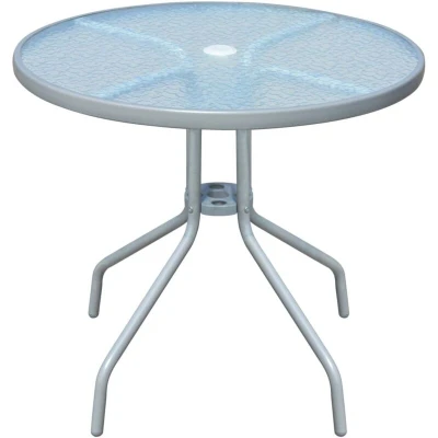 This round garden table will make a great addition to your outdoor living space. It will add a touch of modern elegance to your patio, balcony or garden with its understated, yet stylish design. The table is easy to clean, hard-wearing and suitable for daily use. The powder-coated steel frame makes it very sturdy and durable. Thanks to the lightweight construction, it is easy to move around. The tabletop is made of 5 mm thick, tempered, ripple glass. With central parasol holes on the tabletop and at below, you can easily install a large canopy to create some sunshade during hot summers. Assembly is easy. Note: We recommend covering the table in the rain, snow and frost. Colour: Grey Material: Powder-coated steel frame + tempered glass tabletop Dimensions: 80 x 71 cm (Diameter x H) 5 mm thick ripple glass tabletop With parasol holes Easy to assemble SKU: 43316 EU responsible party Haba Trading B.V. Mary Kingsleystraat 1 5928SK Venlo The Netherlands [email protected]