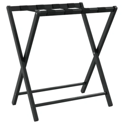 vidaXL Black Bamboo Luggage Rack, Foldable Stand for Suitcase Packing and Storage, Sturdy Design with Polypropylene Straps, 68.5x38x58cm, Maximum Load 70kg