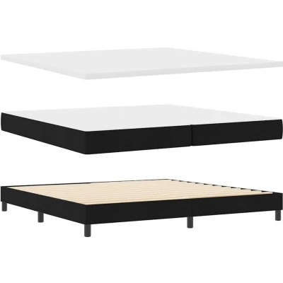 ManoManoGeneral description This Box Spring Bed with Mattress combines elegance and practicality, making it perfect for modern homes. Its stylish frame offers both aesthetic appeal and functionality, providing a relaxing space to unwind after a long day. The adjustable headboard allows you to customize the height for optimal comfort while sleeping, reading, or watching TV. Technical specifications Colour: Black Material: Fabric and plywood Overall dimensions: 203 x 203 x 88 cm (L x W x H) Includes: Bed frame, headboard, mattress, and mattress topper Assembly required: Yes EAN: 8721158221575 SKU: 3340110 Brand: vidaXL Other information