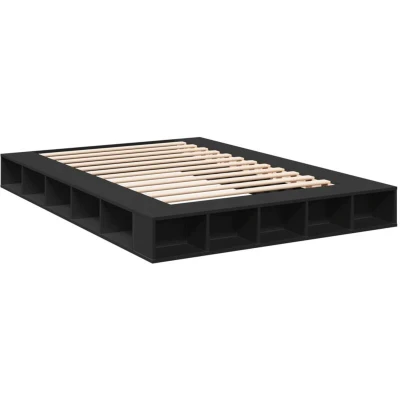 vidaXL Black Engineered Wood Bed Frame Double Bedstead 160x200 cm with Plywood Slats and Extra Storage for Bedroom