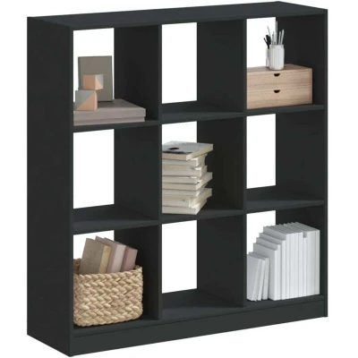 vidaXL Black Engineered Wood Bookcase 9 Cube Shelf Unit for Living Room, Bedroom, Office 102x32x108 cm