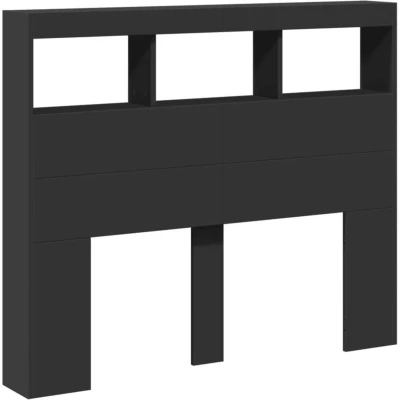 vidaXL Black Engineered Wood Headboard Cabinet with LED for Bedroom 120x17x102 cm Stylish Storage & Ambient Lighting