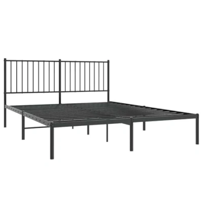 vidaXL Black Metal Bed Frame with Headboard and Storage Space 160x200 cm, Durable Powder Coated Steel Construction, Easy Assembly, Elegant Design.