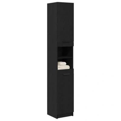 vidaXL black oak bathroom cabinet engineered wood 188.5 cm height bathroom/kitchen storage furniture with compartments