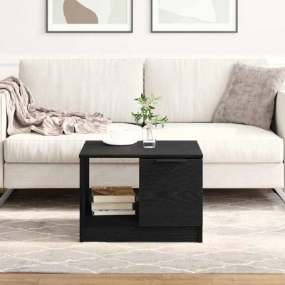ManoManoGeneral description Check out this Square Coffee Table – it’s got the perfect mix of style and practicality for any living room. With a sleek textured finish and solid engineered wood, it’s not just a handy centerpiece but a lovely addition to your décor. Its medium size means it can fit in with lots of different styles without crowding your space. Technical specifications Material: Engineered wood Colour: Black oak Overall dimensions: 50 x 50 x 36 cm (L x W x H) Includes: 1 Drawer and 1 Shelf Assembly required: Yes EAN: 8721158771414 SKU: 862743 Brand: vidaXL Usage Great for holding drinks, magazines, or decorative items. Adaptable for various settings, from casual lounging to hosting friends. Other information