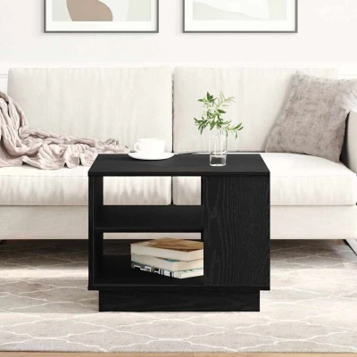 ManoManoGeneral description This lovely coffee table is the perfect mix of function and style for your living space. Its smooth, matte finish gives it an elegant vibe, making it spot-on for modern homes. Designed for indoor use, it’s crafted from sleek engineered wood that’s tough and resistant to wear. This table not only elevates your living room but also provides a handy spot for drinks, books, or decor while giving you extra storage with its clever shelves. Technical specifications Colour: Black oak Material: Engineered wood Overall dimensions: 55 x 55 x 42 cm (L x W x H) With 2 shelves Assembly required: Yes EAN: 8721158771124 SKU: 862714 Brand: vidaXL Installation Assembly instructions make putting it together a breeze. You’ll just need a few common tools like a screwdriver and hammer, and two pairs of hands to get it done. Usage Recommended for living room use, this coffee table is a perfect fit for any indoor space. Its dimensions make it suitable for everything from large living