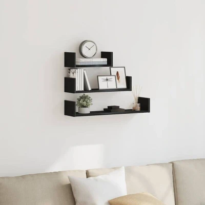 vidaXL black oak engineered wood floating shelves modern wall mounted set of 3 for living room/office/storage 60/45/30 cm