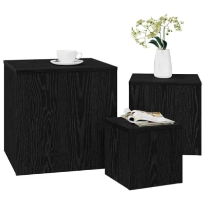 vidaXL Black Oak Engineered Wood Side Tables Square Stackable Small Accent for Living Room/Bedroom Set of 3