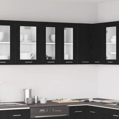 ManoManoGeneral description This modern kitchen wall cabinet perfectly complements contemporary spaces. It features a sleek, rectangular design that can update the look of your kitchen while offering essential storage solutions. Crafted from engineered wood, its stain-resistant finish ensures effortless maintenance while adding a touch of sophistication to your cooking area. Technical specifications Material: Engineered wood Colour: Black oak Overall dimensions: 60 x 31 x 60 cm (L x W x H) Weight: 13.3 kg Included Components: 1 x Hanging glass cabinet, finished back panels, and durable board shelves Features: Glass doors, 2 doors, ample storage Indoor / outdoor: Indoor use only Assembly required: Yes Mounting included: Wall / ceiling fixtures - specific screws or wall plugs not included Range name: Riga EAN: 8721158790552 SKU: 863152 Brand: vidaXL Usage Designed specifically for kitchen environments, this cabinet suits modern lifestyles by providing effective storage without compromising on