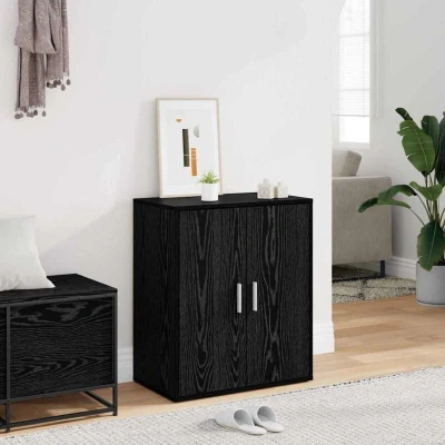 ManoManoGeneral description Take a look at this Shoe Storage Cabinet – it’s a brilliant mix of style and usefulness. Made from top-quality engineered wood with a sleek black matte finish, it fits right into any home and provides ample space for your shoes. A must-have for any modern pad. Technical specifications Colour: Black oak Material: Engineered wood Overall dimensions: 60 x 35 x 70 cm (L x W x H) Weight: 22 kg Number of shelves: 5 Number of doors: 2 Indoor use only Installation Assembly required: Yes Usage Perfect for organizing shoes, from heels to trainers, keeping your space neat, especially in smaller homes. Ideal for adults who appreciate practical and organized shoe storage. Other information