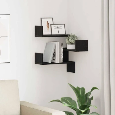 vidaXL Black Oak Wall Corner Shelf Engineered Wood Mounted Storage for Livingroom/Bedroom/Office, Space Saving Design