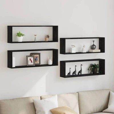 vidaXL Black Oak Wall Shelf Set of 4 Engineered Wood 80 x 15 26 cm for Living Room Décor
