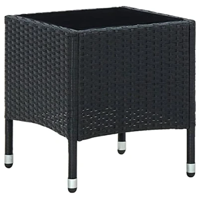 vidaXL Black Poly Rattan Garden Table 40x40x45 cm with Glass Top Modern, Stable and easy to maintain outdoor furniture for Patio or