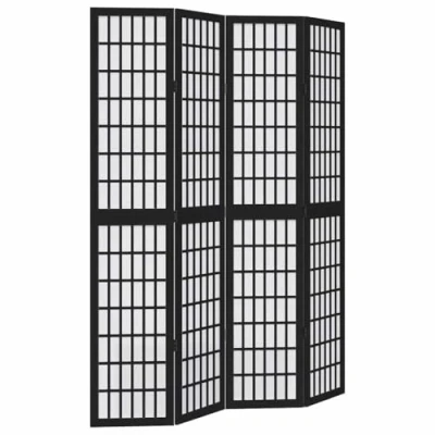 vidaXL Black Room Divider 4 Panels Office Privacy Screen Solid Paulownia Wood Folding Design 140 145x200 cm