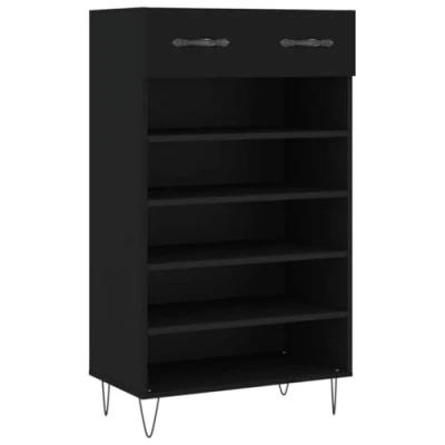 vidaXL Black Shoe Cabinet in Engineered Wood with Drawer and Compartments Shoes Organizer for Living Room or Hallway