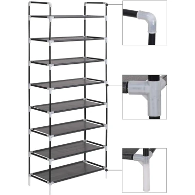 vidaXL Black Shoe Rack with 8 Shelves Lightweight Metal Frame Non Woven Fabric, Customisable Arrangement, and Easy Assembly