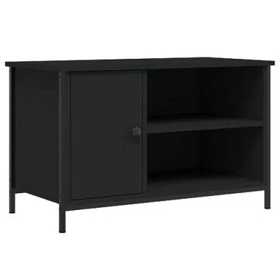 vidaXL Black TV Cabinet Engineered Wood Television Stand with Ample Storage, Sturdy Iron Frame Industrial Style Furniture for Living Room and Lounge 80x40x50cm