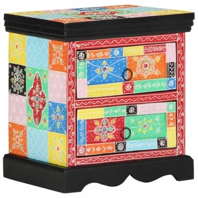 vidaXL bohemian bedside table multicolour wood nightstand with patchwork inlays, drawers for bedroom and living spaces rectangular design