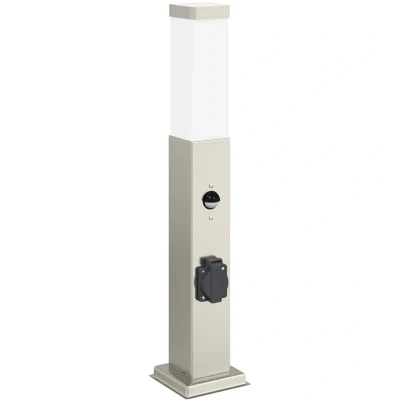 ManoManoGeneral description Enhance your outdoor space with this sleek and functional bollard light! Made from durable stainless steel, this outdoor floor light features an IP44 rating, making it robust and weather-resistant for long-term outdoor use. The built-in PIR motion sensor detects movement within a 110° angle and an effective range of 8-12 meters, automatically turning on the light when motion is detected. You can adjust the brightness sensitivity and set the lighting duration between 10 seconds and 5 minutes. Additionally, the garden light includes a built-in power socket for easy access to power for outdoor appliances. Technical specifications Colour: Silver Material: Stainless steel Overall dimensions: 10 x 10 x 50 cm (W x D x H) Lampshade dimensions: 6 x 6 x 16 cm (W x D x H) IP rating: IP44 Power supply: 220-240 V~, 50/60 Hz Socket type: E27 (bulb not included) Maximum bulb power: 40 W Maximum power the socket can handle: 720 W Number of lamp holders: 1 With outlet socket: Yes