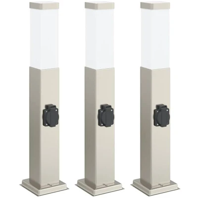 vidaXL Bollard Lights with Outlet 3 pcs 50 cm Stainless Steel IP44
