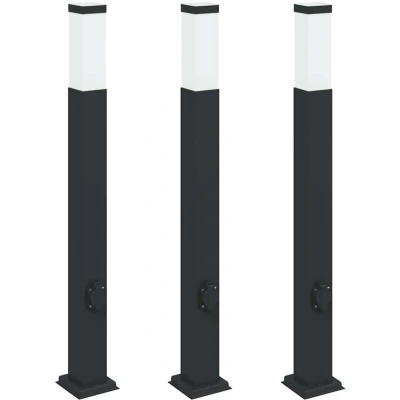 vidaXL Bollard Lights with Outlet 3 pcs 80 cm Black IP44