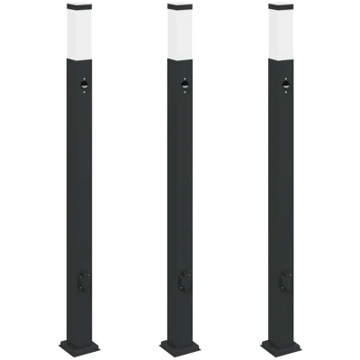 vidaXL Bollard Lights with Sensor&Outlet 3 pcs 110 cm Black IP44