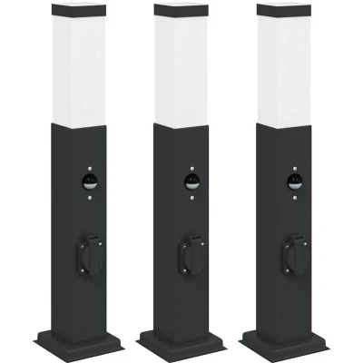 vidaXL Bollard Lights with Sensor&Outlet 3 pcs 50 cm Black IP44
