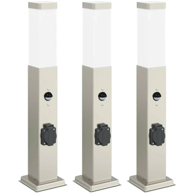 vidaXL Bollard Lights with Sensor&Outlet 3 pcs 50 cm Stainless Steel IP44