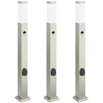 vidaXL Bollard Lights with Sensor&Outlet 3 pcs 80 cm Stainless Steel IP44