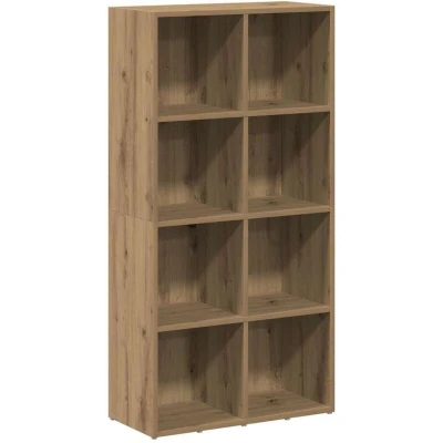 ManoManoGeneral description This book cabinet, featuring a sleek and classic design, is a decorative and practical addition to your home decor. Made from high-quality engineered wood, it offers strength, stability, and moisture resistance. Technical specifications Colour: Artisan oak Material: Engineered wood Overall dimensions: 66 x 30 x 130 cm (W x D x H) Max. weight capacity (total): 60 kg Assembly required: Yes Usage Ample storage space with 8 spacious compartments for magazines, books, DVDs, multimedia devices, and decorative items. Versatile usage as a storage solution for any living space. Easy to maintain with a smooth surface that can be cleaned with a damp cloth. Other information Warning: To prevent tipping, this product must be used with the provided wall attachment device.