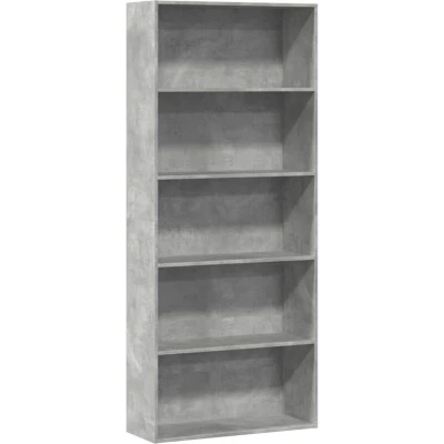 vidaXL Book Cabinet/Bookcase/Storage Bookshelf 5 Compartment Concrete Grey Engineered Wood Perfect for Living Room, Office, and Libraries, Dimensions 80x30x189 cm