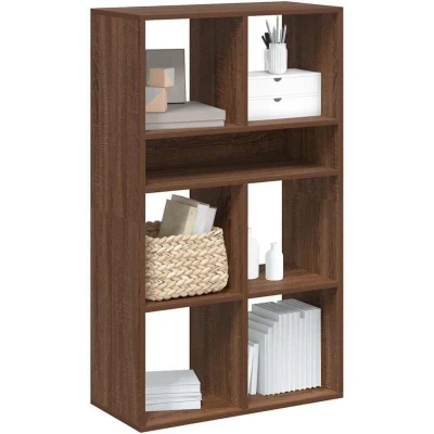 ManoManoGeneral description This book cabinet offers the perfect solution for organizing your books while serving as a stylish and functional addition to your home decor. It is ideal for your book collection and can also be used as a display shelf for your collections, photos, awards, potted plants, etc. Technical specifications Colour: Brown oak Material: Engineered wood Dimensions: 66 x 31 x 112 cm (W x D x H) Assembly required: Yes Usage The sturdy top is ideal for placing small items or decorative items like vases or potted plants. Easy to maintain: Thanks to its smooth surface, the cabinet is easy to clean with a damp cloth and requires less maintenance. Other information Warning: To prevent it from tipping over, this product must be used with the provided wall attachment device.