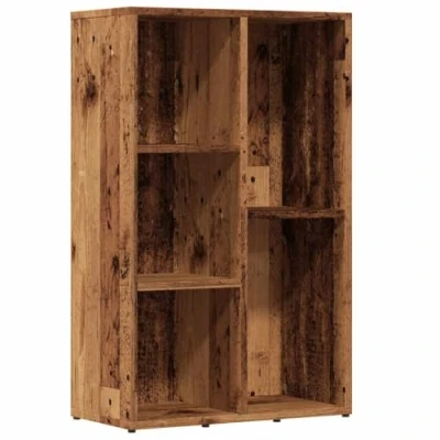 ManoManoGeneral description This book cabinet, featuring a sleek and classic design, is a decorative and practical addition to your home decor. Made from high-quality engineered wood, it offers strength, stability, and moisture resistance. Technical specifications Colour: Old wood Material: Engineered wood Overall dimensions: 50 x 25 x 80 cm (W x D x H) Max. weight capacity (total): 60 kg Assembly required: Yes Usage Ample storage space with 5 spacious compartments for magazines, books, DVDs, multimedia devices, and decorative items. Versatile storage solution suitable for any living space. Easy to maintain with a smooth surface that can be cleaned with a damp cloth. Other information Warning: To prevent tipping, this product must be used with the provided wall attachment device.