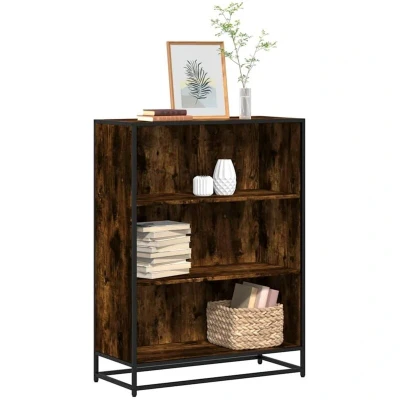 vidaXL Book Cabinet Engineered Wood & Metal Smoked Oak, Modern Design 80x35x107.5 cm 3 Shelf Bookcase/Room Divider