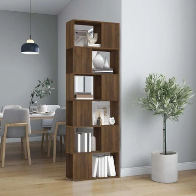 vidaXL Book Cabinet/Room Divider, 6 Compartment, Brown Oak, Engineered Wood, Standing, 60x24x186 cm, Living Room and Office Modern Furniture.