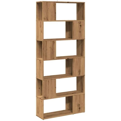 ManoManoGeneral description This classic book cabinet, featuring a sleek design, makes a decorative as well as practical addition to your current decor. The bookshelf is designed with 6 spacious compartments, offering ample storage space for keeping your magazines, books, DVDs, multimedia devices, and other decorative items well organized and within reach. Additionally, the book stand can serve as a room divider, making it a perfect choice for your living space. The bookcase is easy to clean with a damp cloth. Technical specifications Colour: Artisan oak Material: Engineered wood Dimensions: 80 x 24 x 186 cm (W x D x H) Assembly required: Yes SKU: 856737 Installation To prevent it from tipping over, this product must be used with the provided wall attachment device. Screws and plugs for inside the wall are not included. It is advised to find and use screws and plugs suitable specifically for your walls. If you're not sure, you can consult with a professional. Please read and follow each step