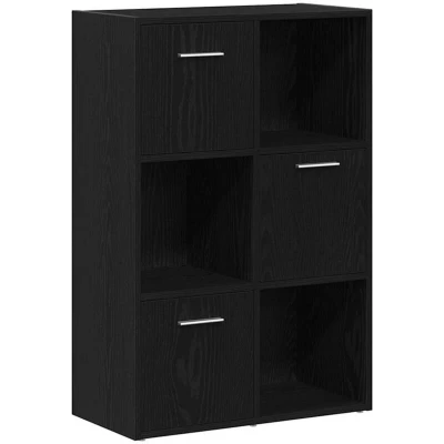 ManoManoGeneral description This book cabinet offers the perfect solution for organizing your books while serving as a stylish and functional addition to your home decor. It features multiple compartments, providing ample space for keeping your collection of books, magazines, and documents in good order. The bookshelf can also be used as a room divider, easily fitting into any style of room. You can place it in the living room to display decorations, in the study to store books and documents, in the bedroom for everyday items, or in the basement for miscellaneous storage. The sturdy top is ideal for placing small items or decorative pieces like vases or potted plants. Thanks to its smooth surface, the bookshelf is easy to clean with a damp cloth and requires minimal maintenance. Technical specifications Colour: Black oak Material: Engineered wood Dimensions: 60.5 x 30 x 90 cm (W x D x H) Assembly required: Yes Installation To prevent tipping, this product must be used with the provided wall