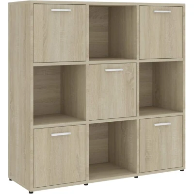 vidaXL Book Cabinet with 9 Compartments & 5 Doors, Sonoma Oak Engineered Wood, Stylish and Practical. Ideal for Living Room, Bedroom, Office