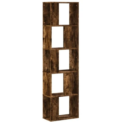 ManoManoGeneral description Create extra storage in your home and office with this stylish 5-tier bookcase in smoked oak. It provides a perfect space for all your treasures, keeping your collectibles, books, knick-knacks, framed photos, and other decorative items well organized and within reach. Technical specifications Colour: Smoked oak Material: Engineered wood Dimensions: 45 x 23.5 x 162.5 cm (W x D x H) Maximum load capacity (total): 65 kg Assembly required: Yes Usage Stable and durable material: Engineered wood is resistant to moisture, warping, and splitting, making it a reliable choice for various projects. Spacious storage: The bookcase offers ample space for organizing your items. Easy to maintain: Its smooth surface allows for easy cleaning with a damp cloth. Partition design: Each layer features partitions for organized placement of objects. Versatile shelf: The bookcase can also serve as a room divider, enhancing your living space. Other information Warning: To prevent tipping,