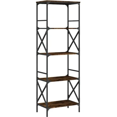 ManoManoGeneral description This bookcase provides an ideal solution for organizing your books and will be a decorative yet practical addition to your home decor. Technical specifications Material: Engineered wood, metal Dimensions: 59 x 35 x 171 cm (L x W x H) Colour: Smoked oak Assembly required: Yes Installation To prevent it from being overturned, this product must be used with the provided wall attachment device. Screws and plugs for inside the wall are not included; it is advised to find and use screws and plugs suitable specifically for your walls. Please read and follow each step of the instructions. Usage The book stand offers ample storage space for keeping your magazines, books, decorative items, and other daily essentials well-organized and within reach. Four adjustable feet with plastic pads keep the book rack balanced on uneven ground and increase stability. Other information
