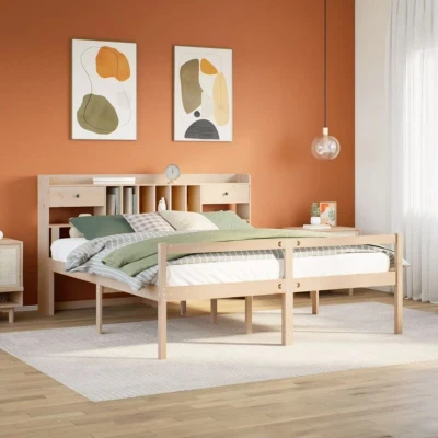 ManoManoGet a better restful night's sleep from this bookcase bed! It makes a welcoming addition to any bedroom. Stable and long-lasting frame: Solid pinewood is known for its strength and durability. Its straight grains and distinctive knots contribute to its rustic charm. Slatted base for optimal support: The bed frame is equipped with a slatted base for support and breathability for your mattress. Ample storage space: This bookcase headboard offers ample storage space to keep books, decorative items, or personal belongings within easy reach, reducing clutter in the bedroom. Practical footboard: The footboard not only contributes to the overall stability of the bed frame, providing a safe sleeping environment, it also secures your mattress in place and prevents blankets, sheets and other bedding from falling off the end of the bed, maintaining a neat appearance. Space saving: This headboard is a space-saving option that can replace the need for a bedside table, helping maximise your bedroom