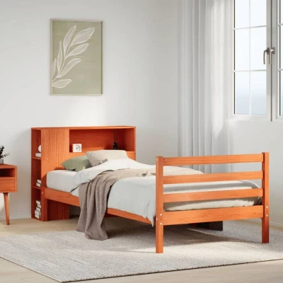ManoManoGeneral description Get a better restful night's sleep with this bookcase bed! It makes a welcoming addition to any bedroom, combining functionality with rustic charm. Technical specifications Colour: Wax brown Material: Solid pinewood Overall dimensions: 219.5 x 81 x 82 cm (L x W x H) Bed frame dimensions: 195.5 x 80.5 x 69.5 cm (L x W x H) Clearance height under the bed: 21 cm Suitable mattress size: 75 x 190 cm Small Single (mattress not included) Bookcase headboard dimensions: 81 x 24 x 82 cm (W x D x H) Suitable for mattress width: 75 cm Compatibility and accessories A mattress is not included with this bed. Various selections of mattresses are available in our shop. Installation Assembly required: Yes Usage Ample storage space in the bookcase headboard for books, decorative items, or personal belongings. Practical footboard that secures the mattress and maintains a neat appearance. Space-saving design that can replace the need for a bedside table, ideal for small or limited